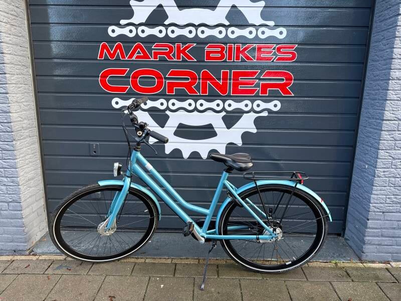 Met 8 versnellingen, handremmen, naafdynamo verlichting en slot.