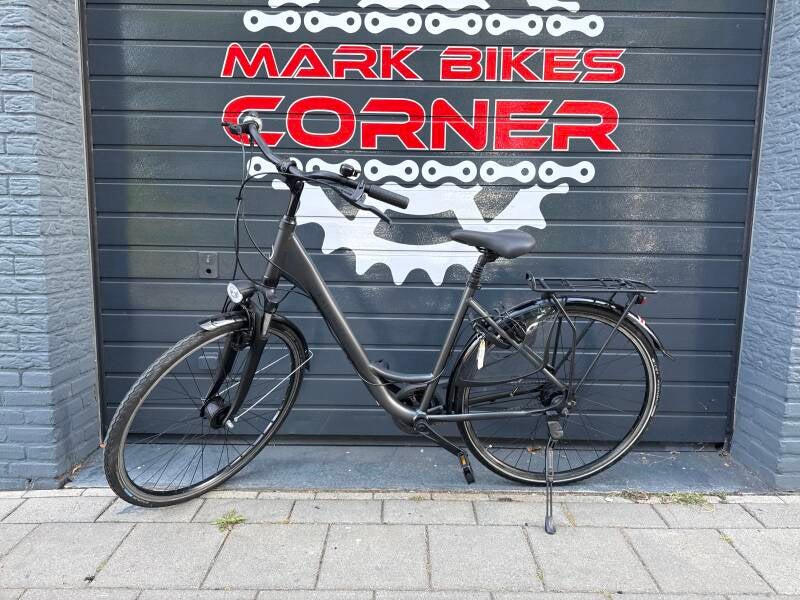 Met 7 versnellingen, handremmen, naafdynamoverlichting en slot.
