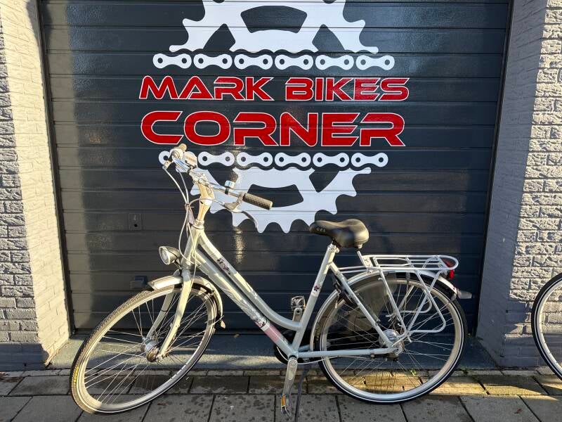 Met 7 versnellingen, handremmen, naafdynamo verlichting en slot.