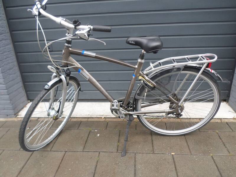 Met 21 versnellingen, handremmen, naafdynamo verlichting en slot.