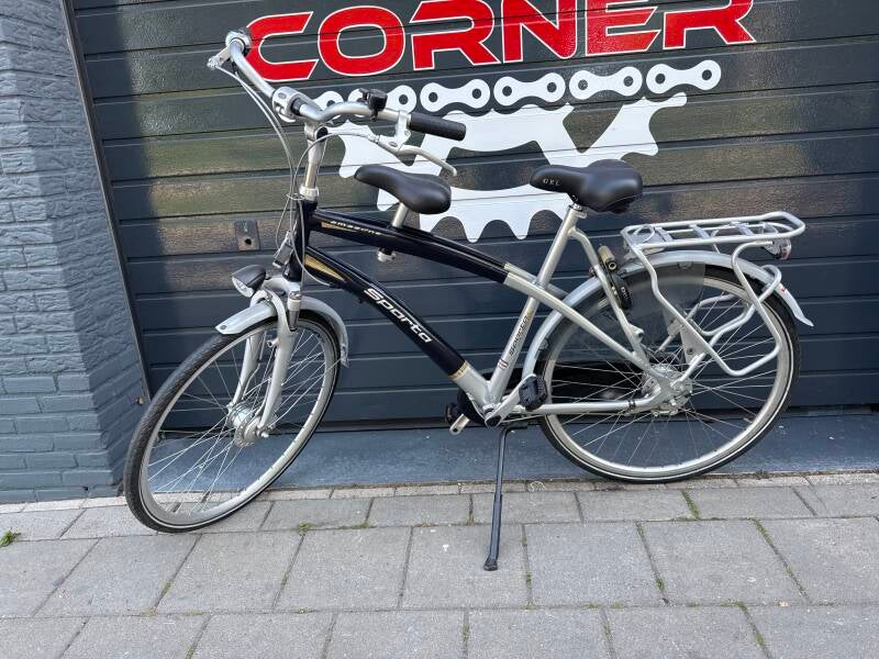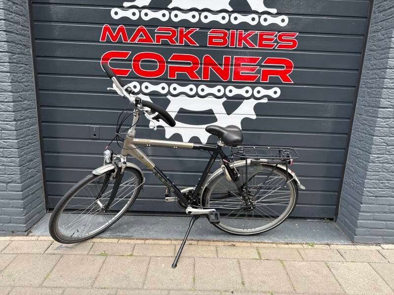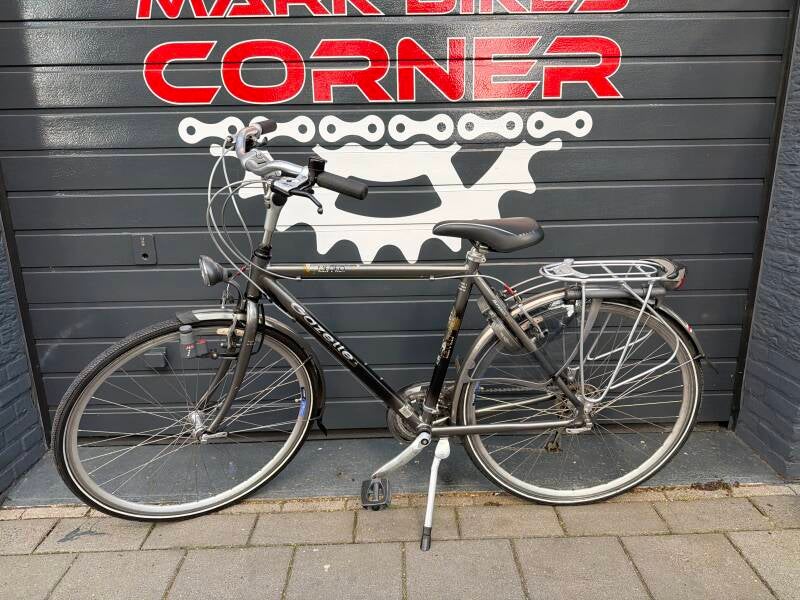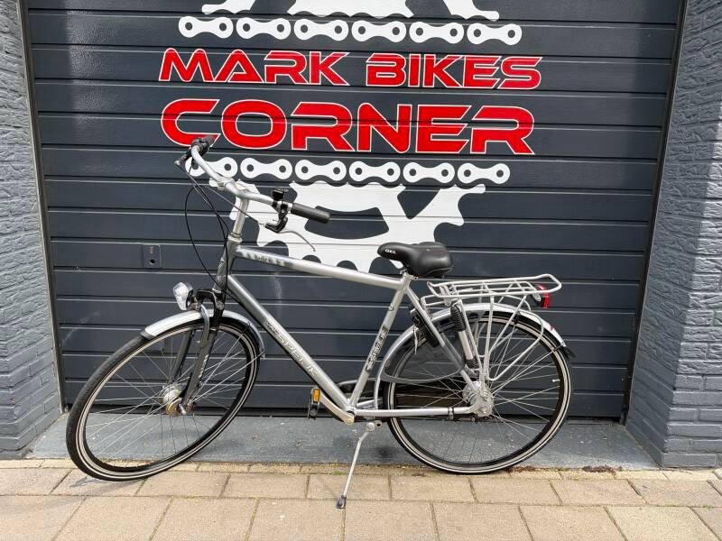 Met 7 versnellingen, handremmen, naafdynamo verlichting en slot.